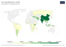 - "World tea production in 2016; Crops/World Regions/Production Quantity from picklists". Food and Agriculture Organization of the United Nations, Statistics Division (FAOSTAT). 2017. Retrieved 4 April 2018.
