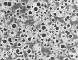- بر اساس شکل گرافیت: گرافیت لایه ای (FG)، گرافیت کروی (SG)، گرافیت فشرده یا کرمی شکل (CG)، گرافیت آبدیده (TG)؛ ساختار گرافیت آبدیده یا تمپر گرافیت از طریق یک فرایند حالت-جامد ایجاد میشود که به آن مالیبل سازی (malleabilization) گفته میشود.