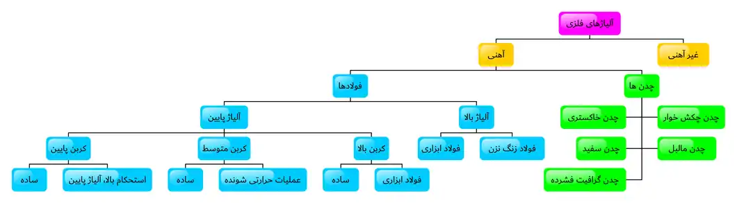 - بر اساس ماتریس: فریتی، پرلیتی، آستنیتی، مارتنزیتی، باینیتی (آستمپر شده)