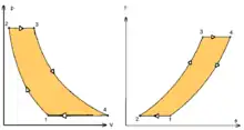 در این چرخه، چهار فرایند ایدهآل ترمودینامیکی به صورت زیر اتفاق میافتد: