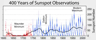 آنها برای قرنها (با تغییرات ظاهری خورشید و تغییرات روی زمین مانند آئورورها مشاهده شدهاند) دیده میشود.