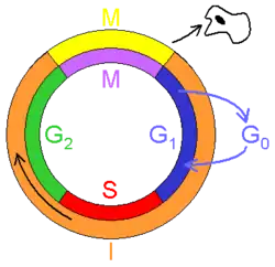 چرخهٔ سلولی به مراحلی که یک سلول از پایان یک تقسیم تا پایان تقسیم بعدی می گذراند را چرخه یاخته ای میگویند که به مراحل G2 ,S ،G۱ و تقسیم (میتوز) (M) دستهبندی میشود.