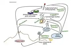 - مشارکتکنندگان ویکیپدیا. «Sulfur cycle». در دانشنامهٔ ویکیپدیای انگلیسی، بازبینیشده در ۱۴ دی ۱۳۹۱.
