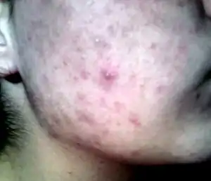 | A pimple (center) evolved into the بیماریهای پوستی stage | |