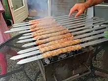 - کباب کوبیده - نوع چرخ شده برگ و ترکیب شده با تخم مرغ وپیاز چرخ شده و جوش شیرین در سیخهائی پهنتر