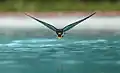 پرندههای جوان فاقد شاخههای دم هستند اما نوار سینه و بالهایشان قهوهای و پیشانیشان بلوطی کمرنگ است. پرواز این پرندگان قوی و باشکوه است و حشرات را اغلب در بالای سطح زمین و در هوا شکار میکنند.
