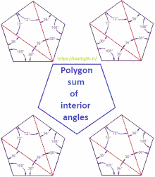برای محاسبه جمع زوایای داخلی چند ضلعی آنرا مثلث بندی می کنیم. از یک راس به بقیه رئوس وصل کرده و تعداد مثلث های بدست آمده را در صد و هشتاد درجه ضرب می کنیم. به عبار دیگر داریم.