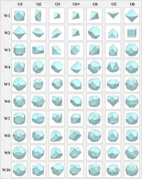 - چهاروجهی: W1 O3*, W2 O3*, W1 O3, W1 O4
