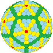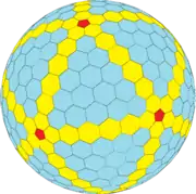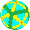 برای ساخت چند وجهی با تقارن چهار ضلعی و تقارن هشت وجهی میتوان از یک روش مشابه استفاده کرد. این چند وجهیها به جای پنج ضلعی دارای مثلث یا مربع هستند. برای این اجسام، عددی رومی نشان داده شدهاست که تعداد اضلاع روی وجههای غیر شش ضلعی را نشان میدهد: (GPIII(n,m), GPIV(n,m), GPV(n,m.