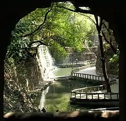 ![]() منظرهای از یک آبشار در باغ صخره٬ چندیگر | |