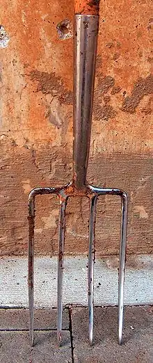 - مشارکتکنندگان ویکیپدیا. «Garden fork». در دانشنامهٔ ویکیپدیای انگلیسی، بازبینیشده در ۱۵ آوریل ۲۰۱۱.
