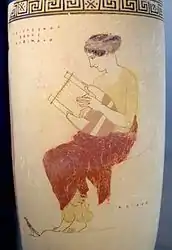 ![]() Greek vase with muse playing the phorminx, a type of lyre | |