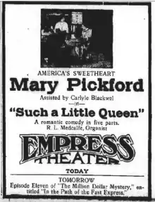 - مشارکتکنندگان ویکیپدیا. «Such a Little Queen (1914 film)». در دانشنامهٔ ویکیپدیای انگلیسی، بازبینیشده در ۴ اوت ۲۰۱۹.