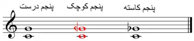 | چهارم درست | چهارم بزرگ | افزوده / کاسته | پنجم کوچک | پنجم درست | |