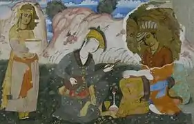 - شاه عباس دوم در پذیرایی از ندرمحمد خان امیر ترکستان در سلسله اشترخانیان (مشاهده)