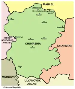 ![]() جایگاه جمهوری چواش بر روی نقشه فدراسیون روسیه | |