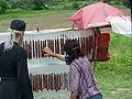 آجیلها ابتدا به نخ گره خورده و چندین بار (هشت تا ده بار) در یک شیرهٔ تهیه شده از انگور یا هر میوهٔ دیگری که در حال پخت و رقیق است فرو برده میشود. سپس آنها را آویزان میکنند تا در آفتاب خشک شوند و باید به مدت دو تا سه در حالت آویزان نگه داری شوند تا بتوان به مصرف برسند.