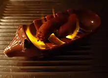 ![]() چوریزوی پرتقالی طبخ شده روی یک سرخ کن خوک مانند قهوه ای | |