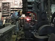 یک آهنگر در حال استفاده از یک چکش آهنگری ۵۰ کیلوگرمی