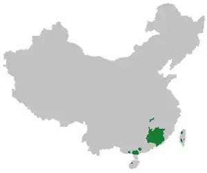 | منطقه | در چین: شرق استان گوانگدونگ، همسایگی استانهای فوجیان و جیانگشی |