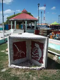 ![]() Stele over the meteorite that hit the Earth 66 Million years ago killing the dinosaurs | |