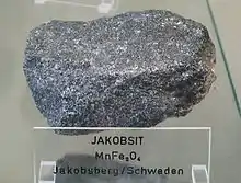 ژاکوبسیت (به انگلیسی: Jakobsite) با فرمول شیمیایی MnFe2O4 از مجموعه کانی هاست و از نام محل کشف آن Jakobsberg در سوئد اخذ شدهاست. محلول در HCl MnO:30.76% Fe2O۳:۶۹٫۲۴٪ از نظر شکل بلور: اکتائدر، رنگ: سبز-سیاه، شفافیت: کدر (اپاک)، شکستگی: صدفی - نامنظم، جلا: فلزی - نیمه فلزی، رخ: ندارد، سیستم تبلور: مکعبی و در ردهبندی اکسید است همچنین خاصیت مغناطیسی قوی و منشأ تشکیل آن دگرگونی است.