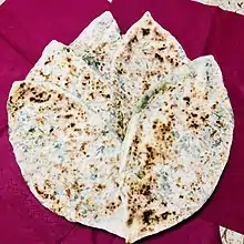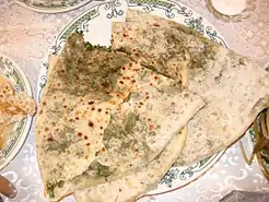 در این خوراک از بیست نوع سبزی استفاده میشود. خمیر نان ساخته شده از آرد، نمک و آب میباشد و درون نان را با بیست نوع سبزی مانند:(نعنای فلفلی، نعنا، شوید، ترشکیان، گزنه و غیره)، (سبزیها ریز ریز میشود و با اضافه کردن نمک، فلفل و روغن مخصوص) پُر میکنند و بر روی قطعهای آهنی به نام «ساج» که بر روی آتش قرار گرفته گذاشته میشود، و آرام پخته میشود با توجه به منطقه طعم پخت متفاوت است.