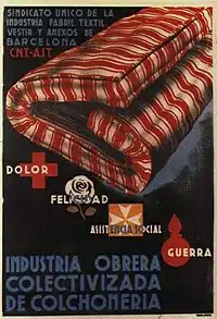 با شروع خودگردانی کارگری در کاتالونیا بسیاری بخشهای اقتصادی به دست اتحادیههای کارگری افتاد. این بخشها شامل خطوط آهن، خودروها، اتوبوسها، تاکسیها، کشتیرانی، شرکتهای آب و برق و گاز، کارخانجات مونتاژ اتوموبیل، معادن، کارخانجات صنعتی و تولید مواد غذایی، نمایشخانهها، روزنامهها، بارها، هتلها و رستورانها، فروشگاههای بزرگ و هزاران مرکز اقتصادی دیگر که تا قبل از انقلاب در کنترل طبقات مرفه بود به کنترل اتحادیههای کارگری درآمد. در حالی که کنفدراسیون ملی کار بیشترین قدرت را در اختیار داشت ولی این قدرت را با سایر اتحادیههای کارگری تقسیم میکرد. برای مثال اداره تلفن ملی اسپانیا توسط کمیتهای مشترک کارگری انجام میشد.