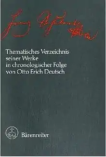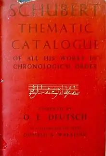 - Otto Erich Deutsch in collaboration with Donald R. Wakeling. Schubert: Thematic Catalogue of all his Works in Chronological Order. London: Dent — New York: W. W. Norton, 1951.