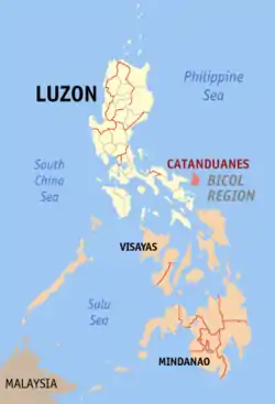 ![]() جانمای استان کاتاندوانه در نقشه فیلیپین | |