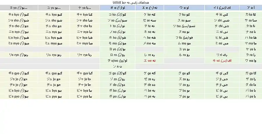جدول حروف به کاتاکانا