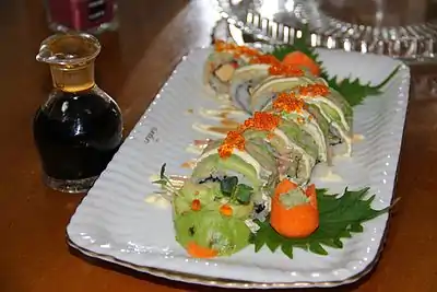 کترپیلار رول (به انگلیسی: Caterpillar Roll) یکی از انواع ماکیزوشی است که در آمریکا ابداع و امروزه در سطح جهانی پراکنده شدهاست. مواد سطح خارجی این رول با برشهای نازک آواکادو پوشیده میشود. در این نوع رول نحوهٔ قرار دادن و رنگ سبز آواکادو بر روی آن شباهت به کرم ابریشم دارد، به همین علت به عنوان کترپیلار رول شهرت پیدا کردهاست. برای داخل رول معمولاً از اوناگی (مارماهی پخته)، خیار، کنجد و پنیر خامهای استفاده میشود. معمولاً با تزئینات این رول به شکل کرم ابریشم آرایش شده و برای آن چشم و دیگر اجزای آن گذاشته میشود. از سس نیز بعد از تکمیل کار برای کشیدن خطوط بر روی رول و ظرف استفاده میشود.[1]