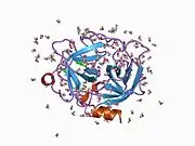 کاتپسین جی (انگلیسی: Cathepsin G) یک آنزیم است که در انسان توسط ژن «CTSG» کُدگذاری میشود. کاتپسین جی یکی از سه آنزیم سرین پروتئاز در خانوادهٔ کیموتریپسین است. این آنزیم در گرانولهای آزورفیل گلبولهای سفید بیگانهخوار یافت میشود. این پروتئاز در از بین بردن ارگانیسمهای مهاجم داخلسلولی، و تجزیهٔ بافتی در محلهای التهاب و پاسخ صد التهابی نقش دارد.[4][5][6][7] ژن این آنزیم در انسان بر روی کروموزوم ۱۴ قرار دارد.
