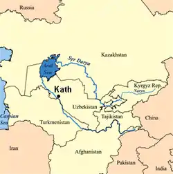 ایالت خوارزم در ابتدای سدهٔ میانه دو پایتخت داشت؛ گرگانج در جانب باختری رود آمودریا و کاث در جانب خاوری این رود. در پایان سدهٔ ۴ قمری کاث دیگر از شهرهای مهم خوارزم نبود. احتمالاً طغیانهای مکرر آمودریا باعث ویرانی شهر گردید؛ زیرا هر طغیان رود، چند محله از شهر را خراب میکرد و در نهایت کار به جایی رسید که کاث در ردیف شهرهای بیاهمیت درآمد.[1]