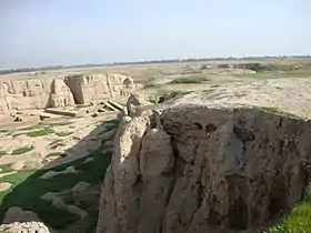 دیوارهای کاخ از خشت و ستونهای آن از جنس سنگ است.