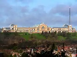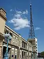 نمایی از کاخ و آنتن تلویزیون بیبیسی بر فراز آن