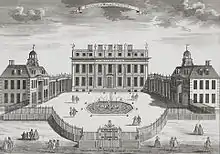 خانهای که هسته معماری کاخ فعلی را شکل میدهد، اولین بار در سال ۱۷۰۳، توسط ویلیام ویند، برای دوک باکینگهام طراحی شد. شیوه اتخاذ شده یک بلوک بزرگ سه طبقهای و مرکزی به همراه دو بخش کناری بود. چارلز شفیلد، نوه باکینگهام، نهایتاً این خانه را در سال ۱۷۶۱با ارزش ۲۱۰۰۰ پوند به جرج سوم فروخت. (ارزش آن در سال ۲۰۱۴، ۲۷۴۰۰۰۰ پوند تخمین زده شد)
