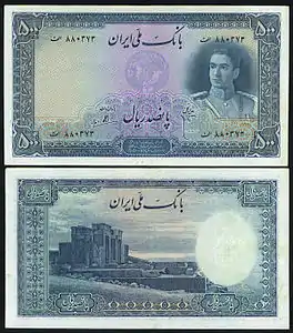 پانصد ریالی - پشت اسکناس تصویر کاخ تچر در تخت جمشید