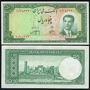 پنجاه ریالی - پشت اسکناس عنوان: کاخ داریوش کبیر در تخت جمشید (کاخ تچر)