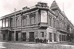 با توجه به کتیبهای موجود بر یکی از دیوارهای این ساختمان که بهطور مرحلهای بنا شده است، معلوم می گردد که، کارهای ساخت و ساز در سال ۱۸۹۵ در خیابانهای «قورچاکووسکایا» و «مرکوریوسکایا» شروع شدهاست. بنا به بعضی اطلاعات، پس از تکمیل ساخت بخش اول ساختمان، آن بخش در اختیار بانک «ولشکو- کامسکی» قرار داده شدهاست. مصالح ساختمانی مورد استفاده برای ساخت این بنا و همچنین تجهیزات، مبلمان، لوسترها و وسایل لازمه برای طراحی داخلی از روسیه و کشورهای اروپای غربی آورده شده بودند. برای زیبا بودن ساختمان تعمیرکاران و نقاشان حرفهای خارجی جهت حضور در ساخت آن دعوت شده بودند. گفته میشود که ۲۷۰ نفر به عنوان مهندس، معمار، نجار و غیره... در ساخت این کاخ کار میکردند.[4]