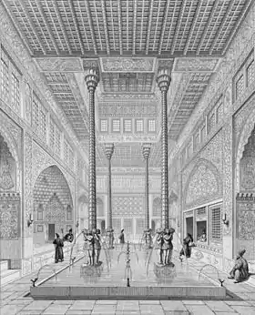 پایهستونهای تالار سرپوشیده که اکنون در چهلستون نگهداری میشوند.