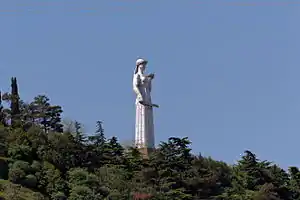 این مجسمۀ ۲۰ متری از آلومینیوم و به شمایل بانویی گرجی با لباس محلی ساخته شده که در دست راست وی شمشیری به معنای سلحشوری و تهدید دشمنان و در دست چپ، جامی از شراب، به نشانۀ مهمان نوازی و استقبال از دوستان قرار دارد.[1]