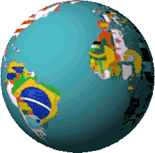 کره زمین منقش به پرچم کشورهای گوناگون به صورت پویانماییشده.