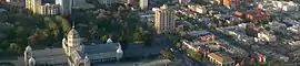 ![]() Aerial view looking south over Carlton. The ساختمان نمایشگاه سلطنتی and Carlton Gardens (left), Rathdowne Street (centre), Drummond Street (right) and Lygon Street (far right) | |||||||||||||||