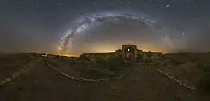 ![]() نمای بیرونی از کاروانسرای قصر بهرام در شب | |