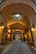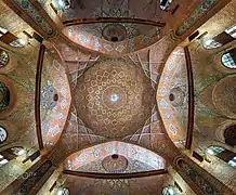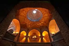 چهار طرف گنبد را، چهار نیمگنبد با رسمیبندی و نورگیر فراگرفتهاند که فضا را بزرگتر نشان میدهند.