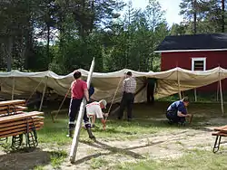 برافراشتن یک چادر بزرگ در یک کار جمعی داوطلبانه در فنلاند در سال ۲۰۰۵.