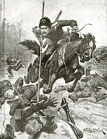 یک کازاک دن در جنگ جهانی اول در یک یورش به تنهایی ۱۱ سرباز آلمانی را از پا درآورد. طرحی از استنلی وود در اشاره به این رویداد.