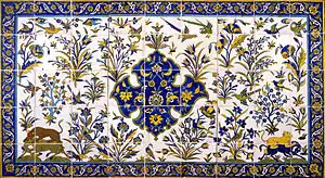 کاشی کاری در آرامگاه شیخ مغربی در نیشابور. نمونه از کاربرد تزیینی کاشی سفالین