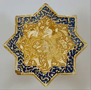 کاشی ایرانی ستارهای شکل با طرح نبرد مربوط به نیمه دوم سده سیزدهم میلادی (ایلخانیان) در موزه والترز آرت واقع در مریلند، امریکا